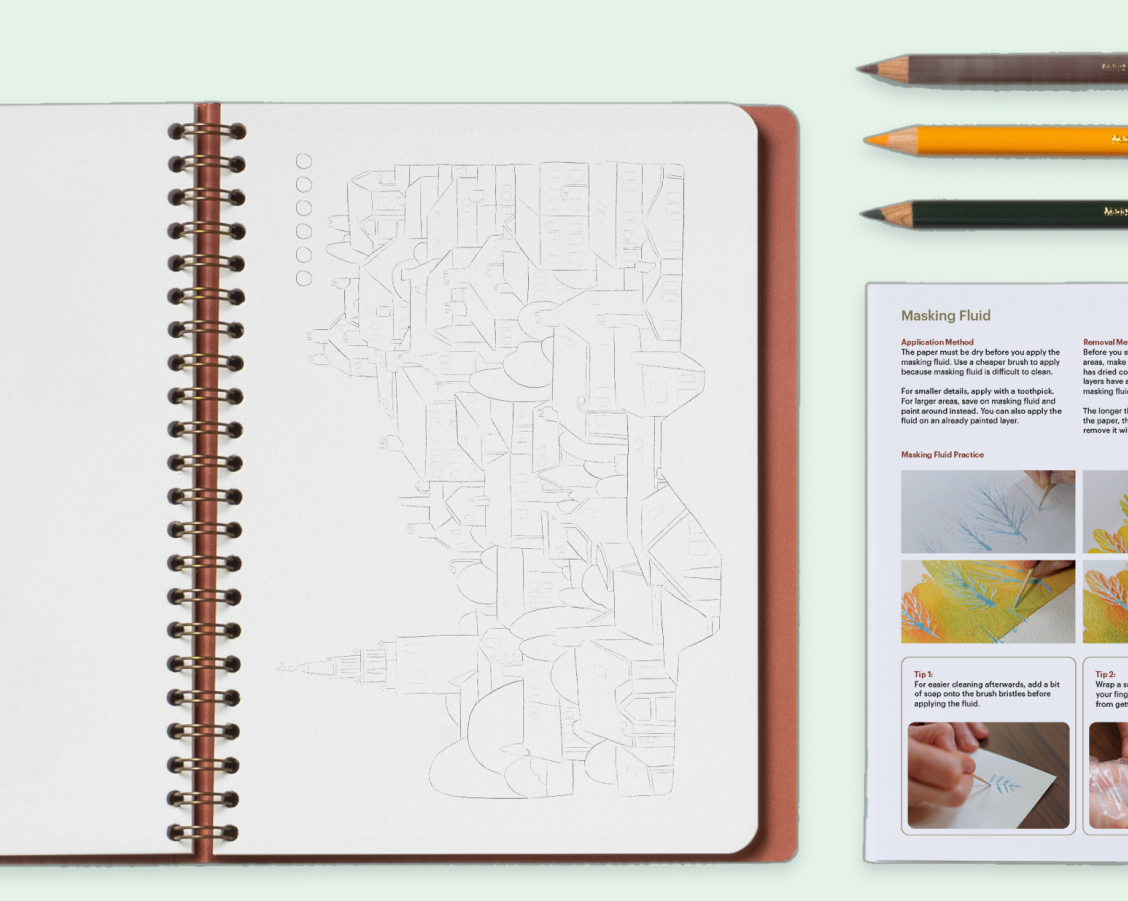 Our workbook and guidebook is designed to eliminate the fear of starting. Create with ease, guided by the artist themselves.